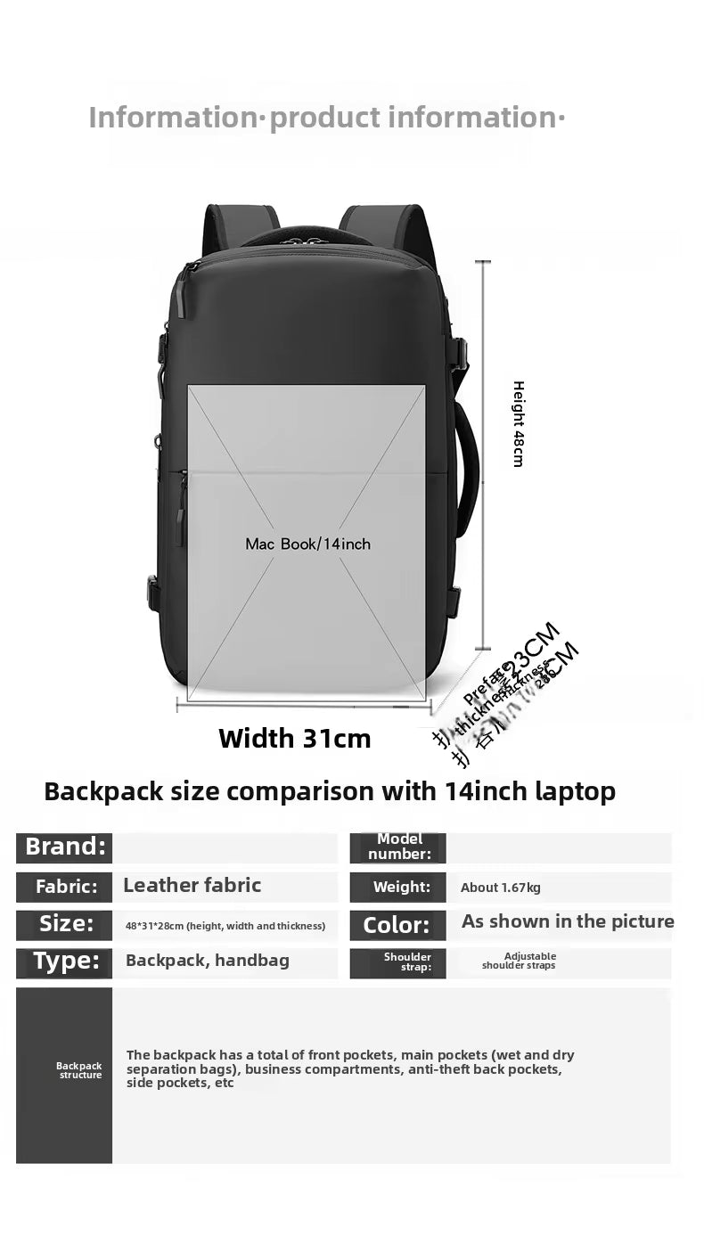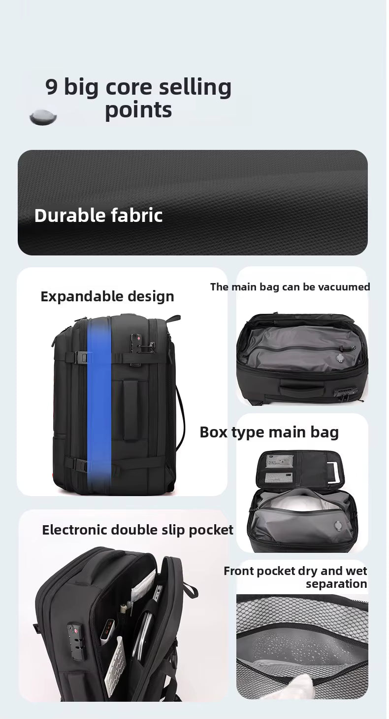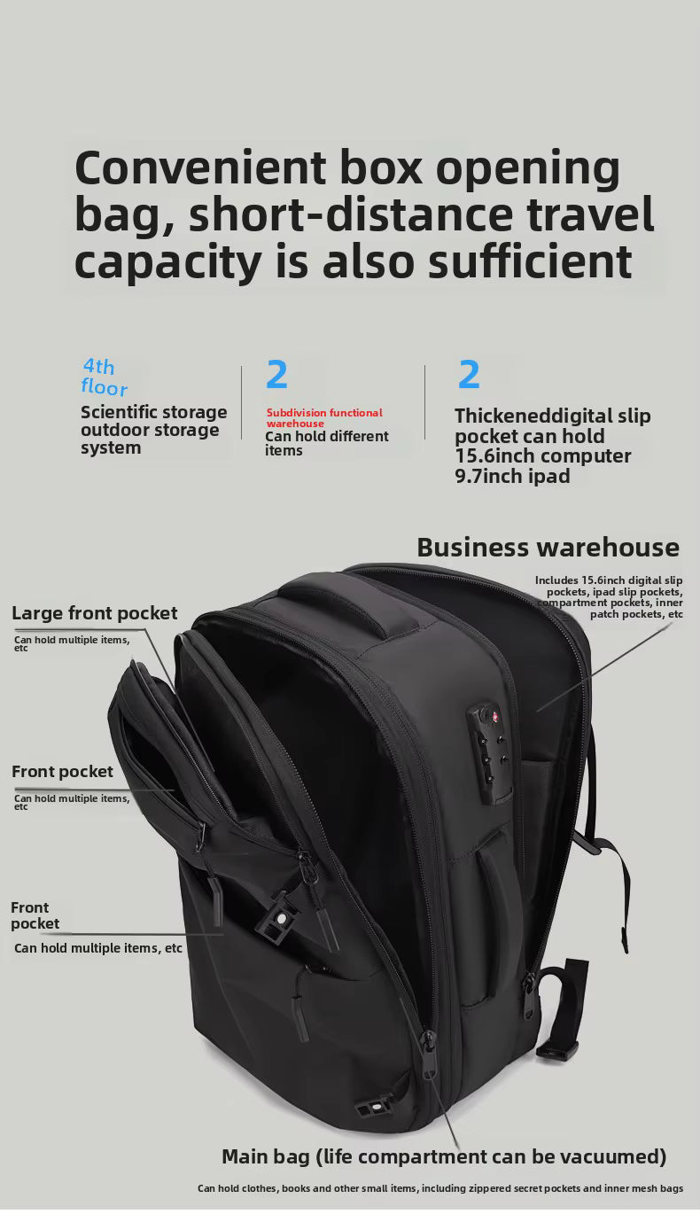Sac à Dos Cartable Grande Capacité Antivol Compression Sous Vide étanche